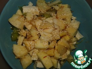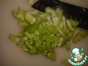 Стебель Сельдерея кубиками, яблоко треугольниками