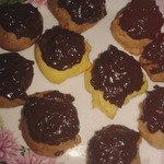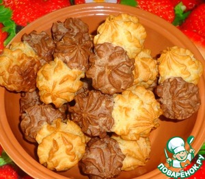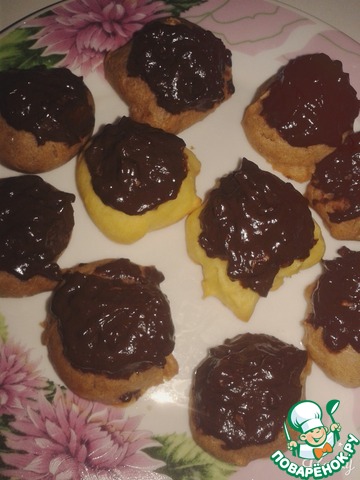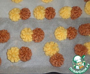 Отсадить на противень профитроли - одна светлая, другая темная (вплотную друг к другу).
