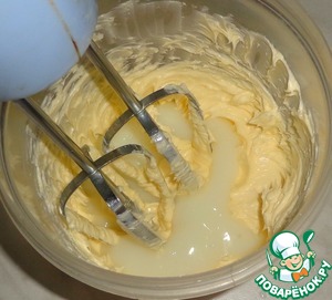 Из молока, сахара и крахмала сварить молочную массу. Остудить и добавить к маслу. Взбить.