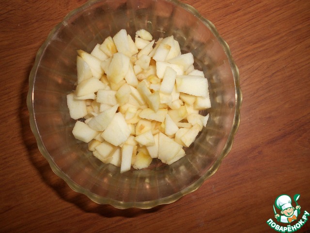 Яблоко вымыть, очистить от кожи и семян, нарезать мелкими кубиками.