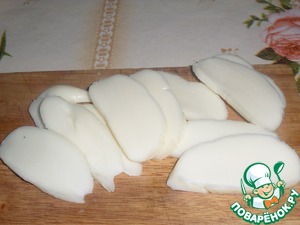 В чашке делаем заправку : смешиваем оливковое масло, измельченный чеснок, зелень, щепотку соли.
