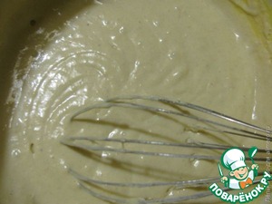 Отделяем желтки от белков. К желткам добавляем соль на кончике ножа. Взбиваем. Добавляем молоко, а затем муку с разрыхлителем. Все перемешиваем до однородной массы.