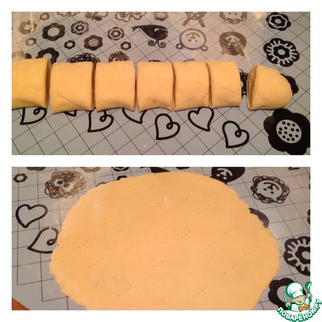 Разделить тесто на 8-9 частей. ( у меня сковорода диаметром 26 см).