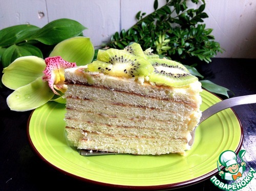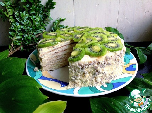 Получается красивый, вкусный и нежный тортик из минимальных продуктов. С нежным сливочным вкусом и тонким ароматом рома и ванили, в окружении орехов и свежего бодрящего киви. Готовить такой тортик быстро и интересно. Прекрасно украсит праздничный и повседневный стол, а времени на готовку уйдет у вас минимум. Результатом останетесь довольны вы и ваша семья. Этот скромный подарок хочу адресовать в день рождения lada-109. Угощайтесь!!!