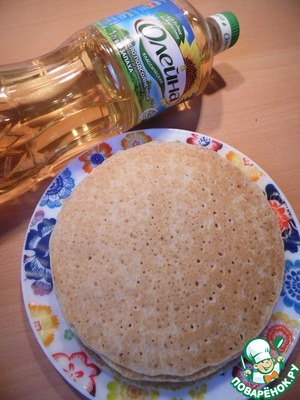 Блинчики приготовить по любимому рецепту на растительном масле "Олейна".