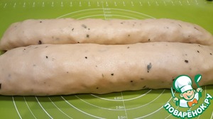 Выкладываем на прямоугольник начинку и сворачиваем рулетом. Поступаем также со второй половиной теста. Защипываем бока и край рулета. У меня получились немного разные по размеру рулеты, но, в конечном итоге, это совершенно не влияет на результат.