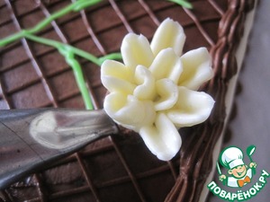 Она по краям торта шоколадным кремом отсадила бордюр.