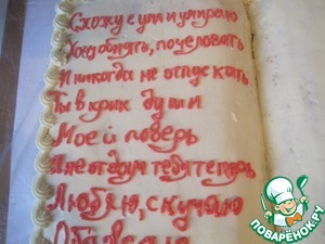 Жизнь очень длинная и в ней очень много событий и поэтому Она отсадила белый крем на три стороны торта при помощи кондитерского мешка и насадки, имитируя страницы книги.