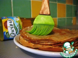 Для начала испечем блины, пропитываем их маслом "Олейна"