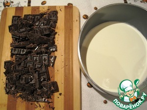 Закипающие сливки снимем с огня, добавим к ним шоколад и оставим на пару минут.
