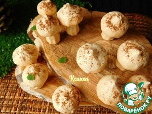 Перекладываем безейную массу в кондитерский мешок и отсаживаем безе в форме шляпок и ножек грибочков.