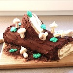 Формировала и украшала полено я непосредственно на сервировочном подносе, обложив его кусочками пергамента, чтобы не испачкать поднос кремом.
