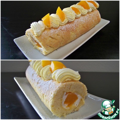 Ингредиенты для «Бисквитный рулет с персиками»: