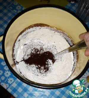 Яйца взбить с сахаром. Добавить муку с разрыхлителем