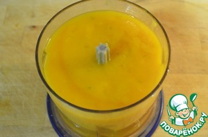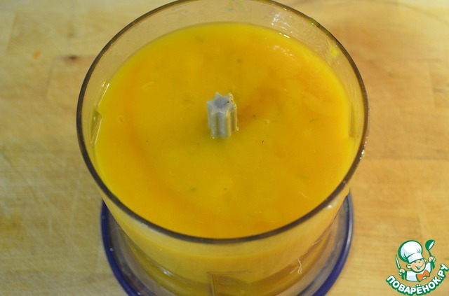 2. Выложить мякоть манго и сахарный раствор в комбайн и прокрутить до однородной массы.