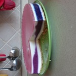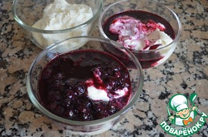 5. Разделить сливочную массу на три порции. К одной будут добавляться ягоды черники. К другой – сок от черники. Третья останется как есть. Но в итоге у них должен быть равный объем.