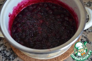 2. Чернику с сахаром готовить на медленном огне до загустения, помешивая, 10 минут. Выключить, дать остыть 3 минуты и всыпать 1 ст. л. желатина. Остудить пару минут и размешать.