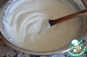 3. Смешать размягченный сыр (комнатной температуры), йогурт, сахар, лимонный сок и половину сливок.