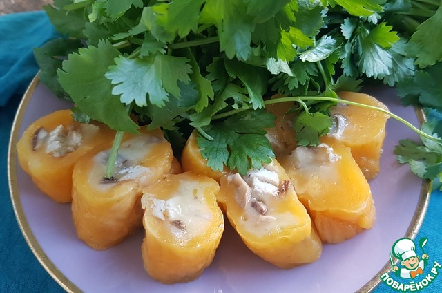 Рецепт «Сырный рулет с курицей и шампиньонами»: