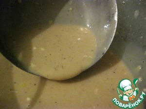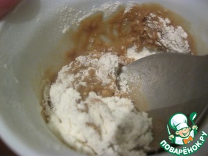 2 ст. л. муки заливаем теплым молоком, хорошенько перемешиваем, чтобы не было комочков