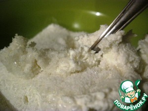 Смешаем маскарпоне с сахаром, хорошенько разотрем в однородную массу.