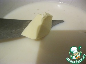 Теперь варим заварной крем. Нагреваем молоко, растворяем в нем сливочное масло, сахар, ванилин