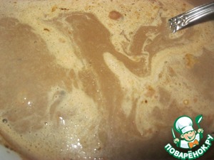 Замесим простое тесто для блинов, только с добавлением эспрессо, печем блинчики на масле "Олейна". У меня из данного количества продуктов вышло 8 крупных блинов.