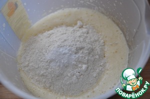 • Добавляем соль, муку и разрыхлитель, всё перемешиваем.