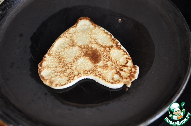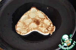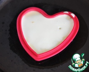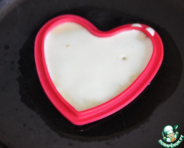 • Для выпечки нужно брать сковороду маленького диаметра: 10-12 см, я решила использовать для выпечки блинчиков формочку для жарки яиц в виде сердца.
