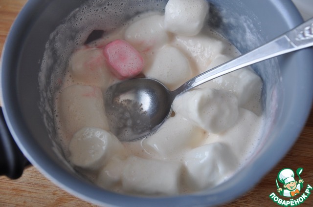• Размешиваем маршмеллоу до полного растворения в сливках.