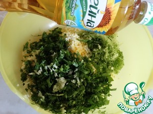 Смешать все в одну массу, влив 1 ст. л. растительного масла для придания начинке вязкости. -