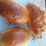 Тем временем включить духовку разогреваться на 190°C. Через 15 минут смешать желток со сливками. По поверхности пирожков сделать ножницами косые надрезы (по желанию!) И смазать молочно-яичной смесью. -