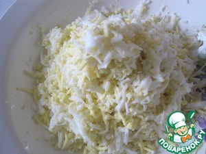 Для соуса отварные яйца натираем на мелкой терке.