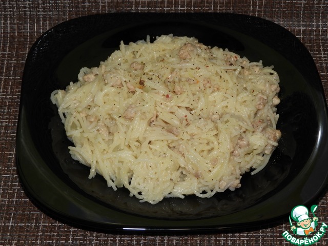 Макароны сварились (степень готовности макарон, каждый определяет для себя. Я, например, люблю слегка недоваренные (аль денте), а муж любит чуть ли не разваливающиеся. Представляете каково мне?), откидываем их на дуршлаг и возвращаем обратно в кастрюлю. Только промывать их не надо!!! Если не забыть добавить масло и варить в достаточном количестве воды - ничего никогда не слипнется! Добавляем фарш.