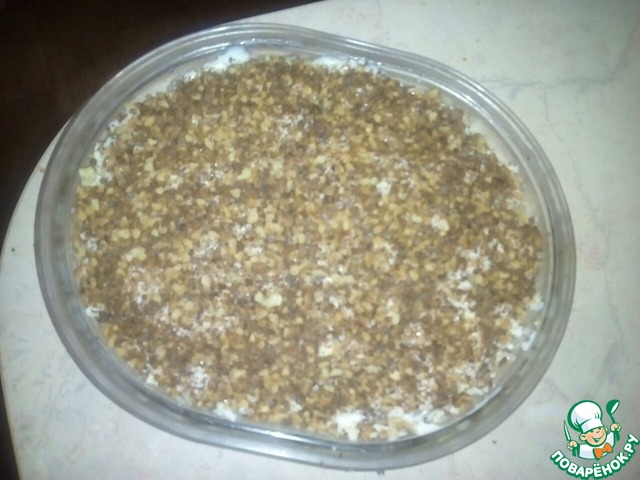 Собираем. Говядину разбираем на волокна. Майонез. Огурец с чесноком. Майонез. Яйцо. Майонез. Орех. Салат готов! Угощайтесь. Буду очень рада, если Вам понравится) |