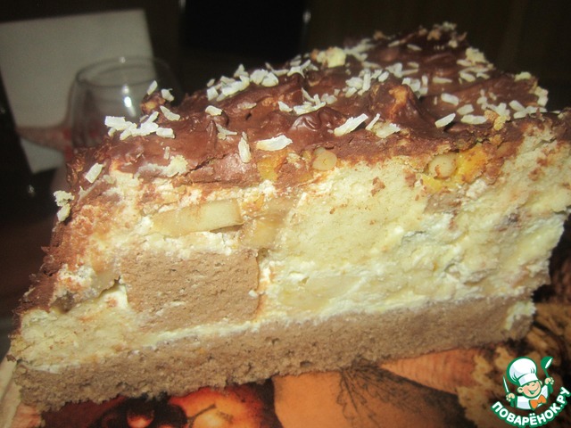 Очень вкусный торт. Мой "Панчо" приготовлен из шоколадного бисквита, творожно-сметанного крема с ананасовым сиропом и кусочками ананаса и полит глазурью. Так горячо любим моей родной сестренкой! Катюша, в твою честь мой "Панчо"!