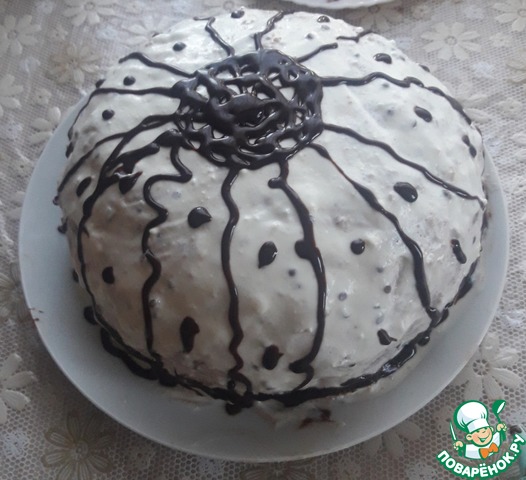 Убрать торт в холодильник на пару часов пропитаться и охладиться.