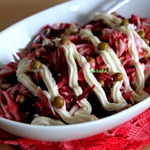 Людочка, ну как аппетитно у тебя вышло! А я вчера свеклу отварила для этого салата, надо быстрей бежать готовить.
