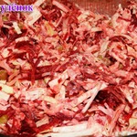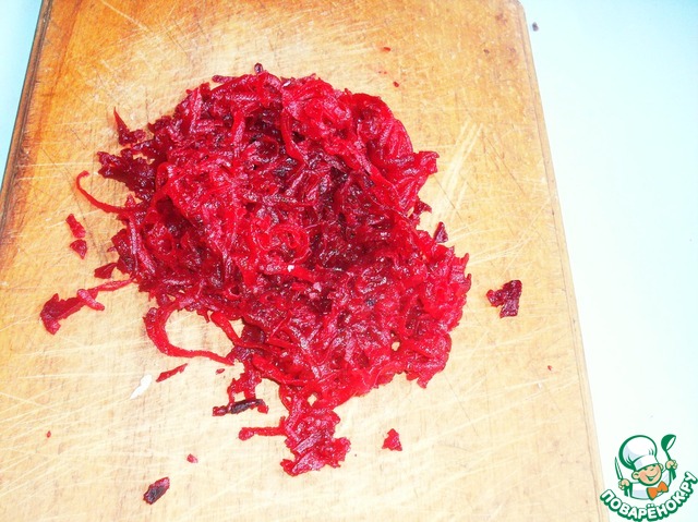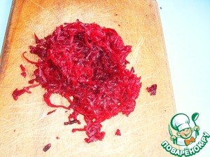 • Свеклу отварить, почистить и натереть на крупной терке.