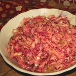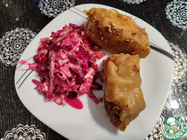 Спасибо за интересный и необычный салат. Для разнообразия буду обязательно повторять. Готовила все по рецепту, ничего не меняла, только капусту не присаливала.