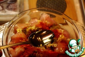 Ну, вот такой маринад. Теперь, перемешивая, я люблю потискать мясо пальцами. Почему-то мне кажется, что так лучше...