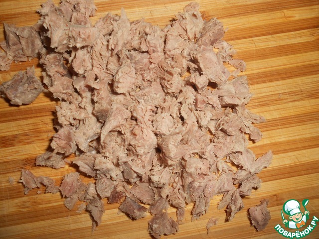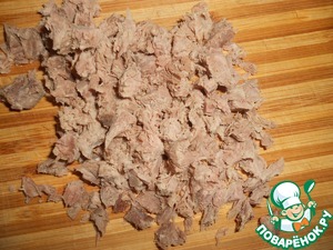 Отварное мясо мелко нарежьте.