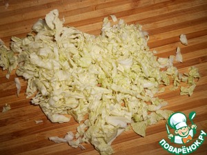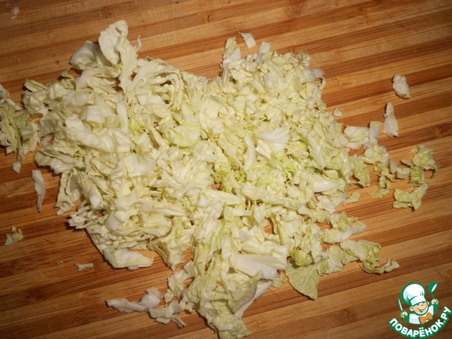 Чеснок очистите и мелко нарежьте. Пекинскую капусту мелко нашинкуйте.
