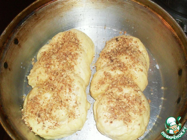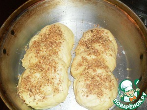 Поставить готовые булочки на расстойку на 40 минут. Можно посыпать молотыми орехами с сахаром.