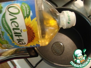 Делаем начинку. В сотейник наливаем подсолнечное масло и разогреваем его.