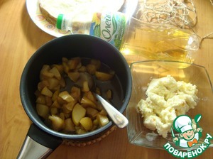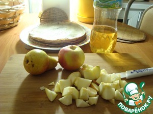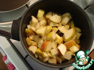 Яблоки и грушу режем небольшими кусочками и отправляем в сотейник.