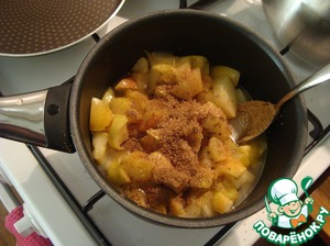 Добавляем сахар и корицу. Делаем до мягкости груши и яблок ещё примерно 5 минут.