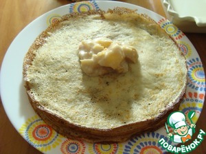 Рецепт «Блинные мешочки с творогом и фруктами»: