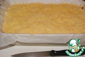 Покрыть кремом верх лазаньи и посыпать сыром.