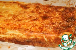 Равномерным, не толстым слоем выстелить соус болоньезе и посыпать сыром. Точно так же поступить с остальными слоями (у меня их 4).